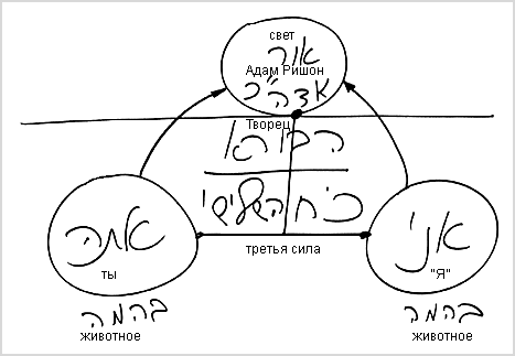 Каждый из нас – животное. А когда мы соединяемся вместе, то приходим к чему-то, называемому Адам. Это новое свойство, новая категория, нечто нам неизвестное – некое ощущение, чувство, существование, вообще не находящееся в нашем теле.