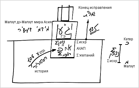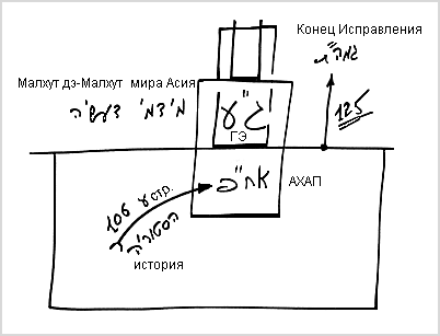 В конечном счете, сейчас всеми своими усилиями мы поднимаемся на эту первую ступень. Можно спросить: «Что происходит дальше?». Дальше я достигаю второй ступени. И тогда обнаруживаю там еще третью ступень, поскольку весь АХАП Высшего находится внутри Гальгальта Эйнаим низшего.