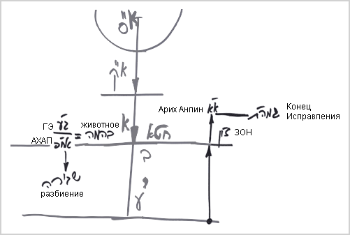 Поэтому Адам Ришон, находящийся в мире Ацилут, называется «животным». Он полностью исправлен в отдающих келим и пребывает в состоянии, которое называется «рай» (ган эдэн). Его состояние подобно Бесконечности, поскольку он находится в свойстве отдачи, которое удерживается Творцом. А весь его эгоизм – АХАП – отключен от него. Но как только он начинает присоединять свой АХАП, то разбивается и падает. После разбиения он становится неисправным, однако именно эта неисправность дает ему в дальнейшем возможность исправиться. В процессе исправления мы поднимаемся из этого мира через миры БЕА в Ацилут: от ЗОН мира Ацилут до Арих Анпина - там находится Конец нашего исправления – Гмар тикун. Почему не выше этого места? Потому что уже здесь мы достигаем равенства свойств с Творцом. То же самое было при движении сверху вниз: пока души не прошли разбиение, они были включены в Творца.