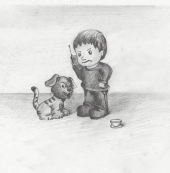 Сказано сделано. Мальчик набрал телефонный номер и попросил незнакомца изменить желание кота мяукать на желание лаять. И тут произошло такое, чего наш герой совершенно не ожидал. Васькина мордочка стала вытягиваться, серые полоски на шерсти начали исчезать, и котенок на глазах удивленного мальчика стал превращаться в щенка. Когда превращение закончилось, щенок залился громким недовольным лаем. Мальчику стало не по себе.