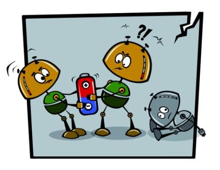Этот робот прекрасно знал о строгом предупреждении. Но поскольку был очень жадным, то решил, что люди такие же жадные, как он, и поэтому не разрешают взять лишнюю батарейку. Оглянувшись по сторонам, он схватил сразу две и подключил к себе. И тут произошло непоправимое – он перегорел.