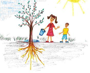 – Верно, они прячутся в земле, но я-то знаю, что они там. Я поливаю землю, чтобы вода добралась до корней. Если мы позаботимся о корнях, наше дерево станет большим и даст тень всему двору.