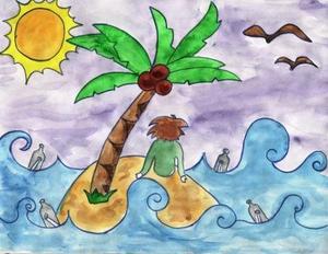 – Я знаю! Я знаю, что нужно делать. Нужно написать записку о помощи и бросить бутылку далеко в море. А потом долго-долго ждать, когда придет помощь, – сказал я.