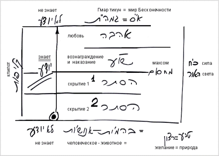 На ступени скрытия он распознает это в меньшей мере, но все-таки может как-то определить. Однако до того, как он начал свой духовный путь, находясь в бессознательном» состоянии, а также после завершения этого пути, - по достижении Конечного Исправления, в мире Бесконечности, - у него нет никаких внутренних определений.