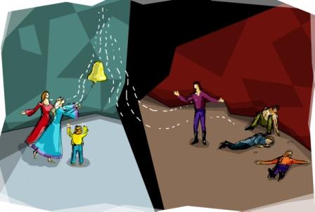 Братья, – сказал он, – у нас единственный способ выбраться отсюда: связаться всем одной веревкой и броситься в воду, возможно, река вынесет нас в мир Света.
