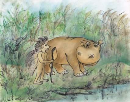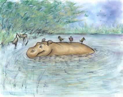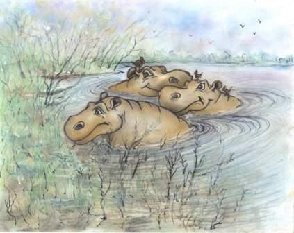 Бегемотик опять вздохнул и нырнул поглубже в воду. Но это тоже не помогло, и тогда он решил перейти поближе к берегу.