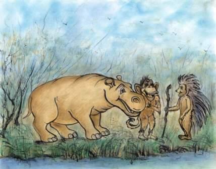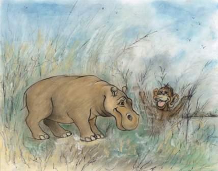 Но тут невдалеке послышалось веселое пение, и перед Бегемотиком появилась задорная рожица Обезьянки.