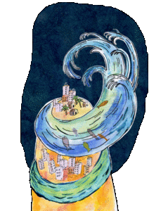 – Ух, пронесло на этот раз, – сказал Человек и пошел размышлять, как построить себе такой дом, которому не страшно цунами.