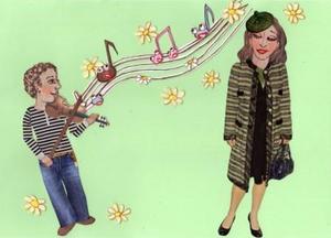 Как-то раз они с мамой сидели очень близко к сцене и слушали сонату для скрипки. Скрипач играл, закрыв глаза, и казалось, что перед ним проплывают какие-то удивительные картины. Все замерли, слушая прекрасную мелодию…