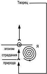 Творец приводит в действие силу природы, подталкивающую человека к развитию, ставя его тем самым в безвыходное положение, ибо в его натуре заложено прогрессирующее желание наслаждаться (см. спираль на чертеже). Чем оно больше, тем больше зла он ощущает в этом мире. Страдания возрастают, и человек теряется в поисках возможности избавления от них. Это видно из процесса исторического развития человеческого общества в целом. Мы испытываем зло и стараемся отказаться от него в надежде, что другой вариант окажется предпочтительнее. Так происходит во всех сферах жизни.