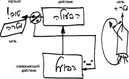 Допустим, я - совершающий действие, нахожусь в каком-то месте. Если это действие правильное, то оно хорошо продвигается. А если не правильное, то должно ко мне вернуться и подкорректировать меня за счет своей обратной реакции. Оно как бы возвращается ко мне со знаком «минус». Я должен почувствовать этот минус и исправить себя, чтобы вышло правильное действие. И как же это сделать?