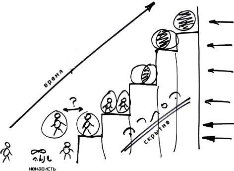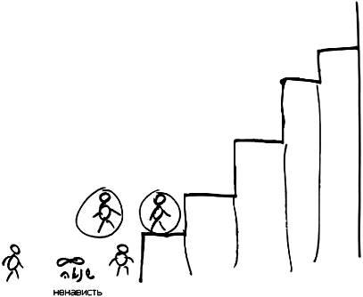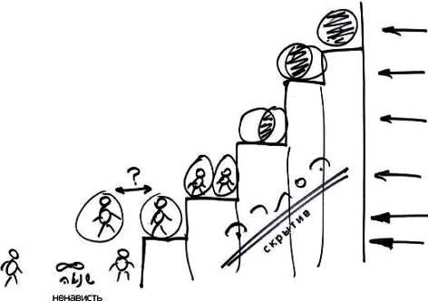 Например, на последней ступени, которая подобна бездне, расстояние между мной и тобой – бесконечно, между нами – ненависть и мы хотим использовать один другого.