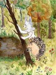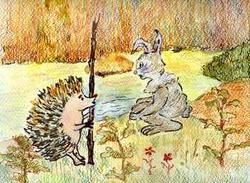 Только вышли на берег, зайчишка отряхнулся и, слова не говоря, побежал вперед. А ежик передохнул немного и продолжил путь.