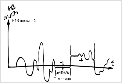 Я хочу сказать, что мир может долгое время, несколько месяцев, находиться в состоянии определенной стагнации, а затем перейти к состоянию эйфории, думая, что мы вышли из трудного положения и нам удалось преодолеть трудности. Почему с нами все время происходят такие колебания? Эти колебания ощущаются в нашем материале, в наших 613 желаниях.