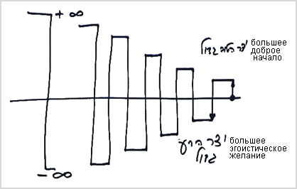 Я не должен делать из себя вежливого, доброжелательного, чуткого, терпеливого ко всем человека. Нет. Я должен подняться над своей природой в объединении с «Добрым и Творящим добро» и «Нет никого кроме Него». А весь эгоизм останется таким, как он есть - в различных его отвратительных формах. Но если поверх этих форм у меня будет связь с «Нет никого кроме Него» и «Добр и Творящий добро», то все они превратятся в свою противоположность – в хорошие свойства.