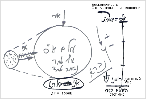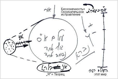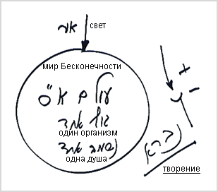В мире Бесконечности творение еще не существует - это лишь зачаточное состояние. Чтобы находящееся внутри этой реальности, но подавленное светом творение могло себя почувствовать, оно получило нечто вроде затуманивания и отдаления. Творению кажется, что оно якобы пребывает совсем в другом состоянии, где есть много душ, а мир делится на внутреннюю часть и внешнюю, состоящую из неживого, растительного, животного и человеческого уровней. Но когда мы начинаем пробуждаться к возвращению в изначальное состояние, чтобы постепенно его раскрыть с помощью ступеней, раскрывающих истинный мир, то возвращаемся к осознанию и начинаем познавать тот мир, в котором на самом деле находимся. Как больной просыпается и узнает место, где он находится, так и мы постепенно приходим к осознанию. Ступенями осознания являются 125 ступеней, которые называются мирами. Слово олам (мир)происходит от слова алама (скрытие).