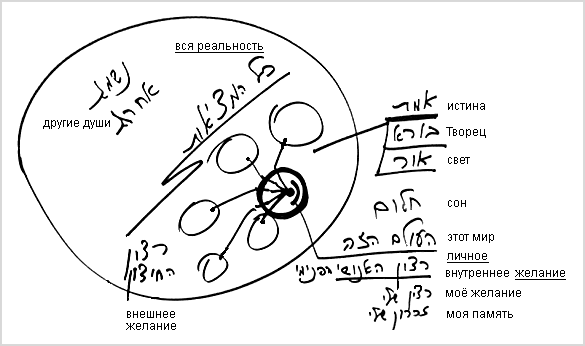 Так и мы живем в своем внутреннем мире, не ощущая, что есть что-то абсолютно вне нас, и там находятся каббалисты – люди, которые уже прошли махсом и видят истинную реальность. Поэтому наш мир, который мы ощущаем, называется придуманным миром. Написано, что когда Творец возвращает нас в духовное, тогда мы понимаем, что были как во сне.