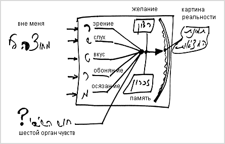 Скажем, есть у нас некая коробка, а внутри нее – пять входных каналов, по которым я воспринимаю будто бы извне. Что-то находится вне меня, и через зрение, слух, вкус, обоняние и осязание в меня поступают якобы внешние впечатления.