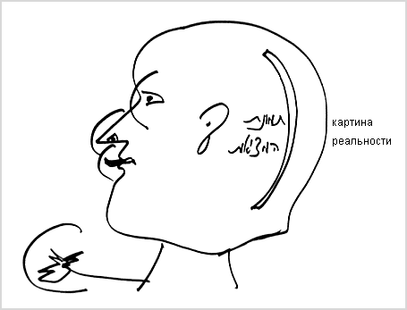 Мне никогда ничего неизвестно о внешнем явлении, я знаю, измеряю и понимаю лишь мои внутренние явления. И потому, говорит наука Каббала, нет ничего вне нас. Все это – внутри человека. Человек живет внутри самого себя. Бааль Сулам говорит, что мы видим все внутри нашего мозга, в задней части которого находится некий экран, рисующий нам какую-то картину реальности, - и все это для того, чтобы мы постепенно изучили, как на самом деле превратить ее во внешнюю картину.