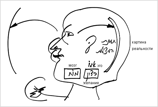 Если ты хочешь воспринять истинную реальность, всю действительность, - она находится вне тебя. Как ее воспринять? – Ты должен соединиться с желаниями, которые находятся вроде бы вне тебя – с другими желаниями. Ты должен присоединить к себе все это внешнее желание – не твое личное, внутреннее желание, а внешнее.
