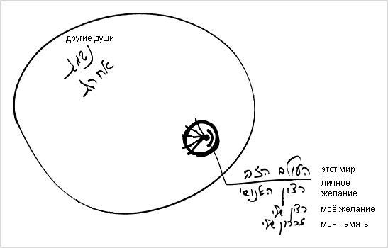 Все, что ты воспринимаешь своими пятью органами ощущений, - это наш мир, этот мир. Как ты воспримешь то, что вне тебя? – Поменяй желание. В эгоистическом, своем личном желании ты воспринимаешь лишь то, что может быть в твоей жизни. Поэтому тебе кажется, что ты воспринимаешь существующее снаружи, но все это – внутри тебя. Все происходящее здесь зависит от твоего желания и твоей памяти. Этот мир представляет собой только лишь мое желание и мою память. Поэтому я ограничен, как одна клетка.