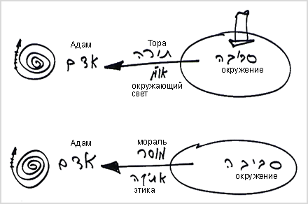 Если же ты создашь ему окружение, которое окажет на него такое воздействие, что все его решимот получат через это общество Высший свет, - не морально-этические нормы, а Тору, Окружающий свет, то человек изменится сам.