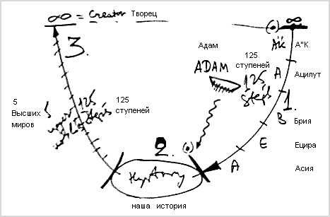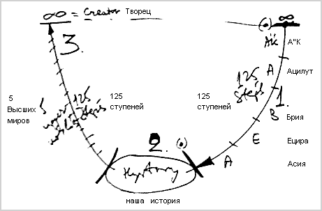 В науке каббала мы учим, что от начальной точки всего творения – точки еш ми аин (возникшее из ничего), когда зародилось желание насладиться, - это желание начало развиваться, и в процессе своего развития по 125 ступеням достигло нашего мира. Из мира Бесконечности оно дошло до того места, где находимся мы.
