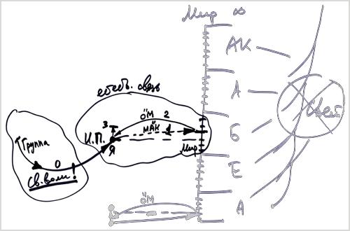 Мы находимся в мире, где есть несколько координат: время, место и перемещение. Все, что мы воспринимаем, все, что входит в мои органы чувств, сразу же делится на несколько параметров. Первый параметр – это перемещение: по оси времени – до и после; или в пространстве, по координатам, по оси времени.