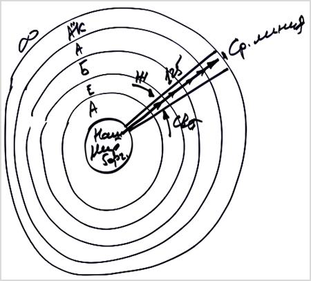 Этот новый мир рисуется в человеке концентрическим по мере постижения, пока он не доходит до своего самого большого постижения – бесконечного. Это значит, человек полностью постиг все мироздание, на всю его глубину, во всех ракурсах, во всех сечениях, во всем его многогранном, многоплановом соединении между собой. Человеку раскрывается не трехмерное состояние, как в нашем мире. Человек постигает миры Асия, Ецира, Брия, Ацилут, Адам Кадмон и выходит в мир Бесконечности.