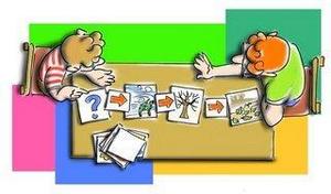 Поужинав, мы приступили к игре. Разложили на столе правила, картинки и начали. Игра называлась «Раньше и потом». Она оказалась довольно интересной, там были картинки, по которым нужно было составить рассказ, расставив их по смыслу, от одной к другой, как в домино. И что хорошо: с этой игрой можно было делать разные варианты: «Рассказ», «Кто первый», «Кроссворд», «Домино». Но главное, нужно было понять рисунок на картинке и сказать, что было раньше, а что потом. Например, там была картинка с деревом, стоящим без листьев, и дорожка с развевающимися по ней листьями.