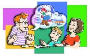 В этот вечер мы все вместе составили два больших рассказа из картинок. Потом каждый по очереди сделал свой рассказ, и мы отгадывали его друг у друга. А в конце мы построили кроссворд из картинок. Потом, когда стало поздно и пора было идти спать, мы закончили нашу игру.