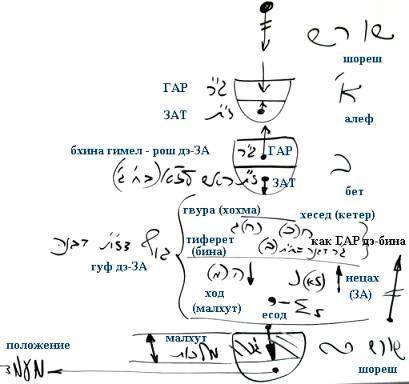 В ЗАТ бхина Бет хочет совершить действие отдачи, и тогда она планирует, как получить, - это рош дэ-ЗА или бхина Гимел. И тогда действия ЗА: Хесед (Кетер), Гвура (Хохма), Тиферет (Бина).