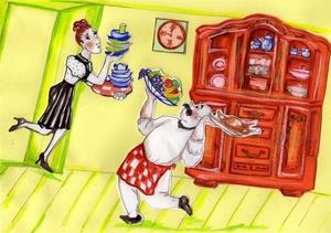 Раз в месяц Стакан встречается с праздничной посудой, когда ее приносят мыть на кухню. Посуда важничает и задирает нос, считая, что стоять в буфете за стеклянными дверцами несравненно лучше, чем быть на кухне.