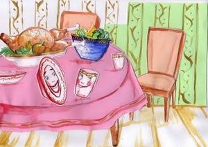 И вот настало очередное торжество в доме. Хозяева вынули праздничную посуду, расставили ее на красивой скатерти и стали наполнять всякими блюдами. Стакан стоял возле знакомой Тарелки, которая жила в буфете рядом с ним.