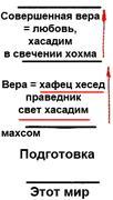 На этом этапе я работаю в двух линиях и реализую среднюю линию, получая ради отдачи. Когда я наполняю желания отдавать и получать - тогда у меня возникает совершенная вера – хохма в хасадим.