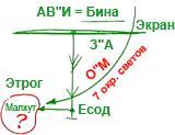 А затем из Есод парцуфа З"А, свет поступает в Малхут, которую символизирует плод этрог. И осуществляется это соединение всех проводников света от АВ"И к Малхут под навесом шалаша, т.е. под экраном, которым душа скрыта от света.