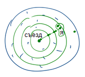 По мощности воздействия, в центре кругов находится физическое место нашего съезда, а все находятся ближе или дальше от него.