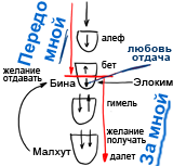 В результате вся система делится на две части: ту, что передо мной наверху, и ту, что за мной внизу. Я получаю всё свыше от Творца и передаю вниз другим. Точно так же действуют клетки на службе телу.