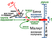 Тогда мы будем сами объединять свойства суда и милосердия, по собственному свободному желанию сочетая силы Бины и Малхут – правой и левой линии. Мы начнем управлять собой, и место выбора станет для нас средней линией.