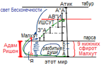 Общая душа Адам Ришон находится в мирах БЕА (Начиная с его "головы" в ГАР дэ-Брия и до "ног" в Асия).