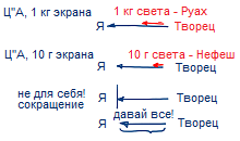 Если я разовьюсь до такого состояния, когда кроме Первого сокращения (Цимцум Алеф, Ц"А) у меня есть также анти-эгоистический экран в 10 г – то на эти "10 граммов" Творец раскроется и засветит мне "10 граммами" света, который называется светом Нефеш.