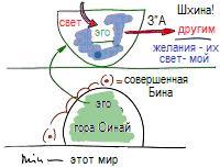 Я оставил желания этого мира на уровне насущно необходимого и поднялся над ними со своей точкой в сердце. Рядом с ней выросла целая гора ненависти (гора Синай) – мое Эго, и я поднялся со своей точкой на эту гору.