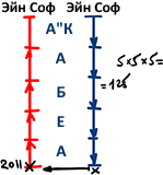 Путь сверху вниз и снизу вверх пролегает через 125 ступеней, поскольку в каждом из пяти миров есть пять парцуфим по пять сфирот.