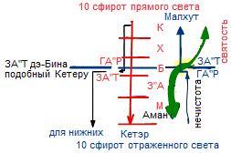 И тут Бина ощущает желание Творца, заложенное в Кетэре – желание слияния. И тогда она разделяется на ГА"Р и ЗА"Т, который чувствует связь с Кетэром и потому развивает в себе получение, чтобы отдавать нижним. Иначе бы не было дальнейшего развития.