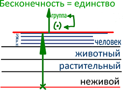 Творение начинается с неживого уровня. Далее следуют растительный, животный и человеческий.