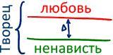 При этом царить во мне может лишь одна из этих сил, но не обе одновременно. И Творец будет в моих глазах тем более велик, чем больше окажется разрыв (∆) между любовью и ненавистью.