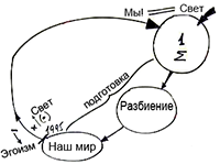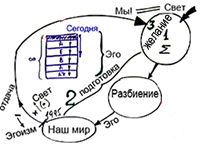 Из первичного состояния, в котором все души были вместе (Σ), мы перешли в мир разбиения, а затем упали в наш мир. Далее, после развития эгоизма и взаимовключения всех его частей, мы достигли поворотного момента (1995), начиная с которого нам нужно исправлять свое эго, чтобы вернуться назад в изначальное состояние.