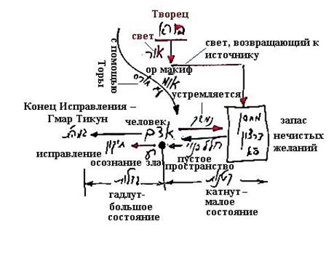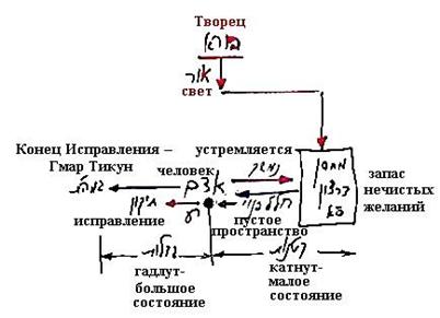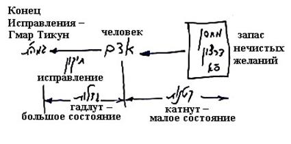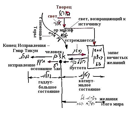 И потому нужен только человек в этом мире, который находясь в малом состоянии получает питание от ситра ахра, – опускается в ситра ахра, получает от нее желания и это называется малое состояние (катнут).