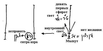 Что касается ситра ахра, нет в ней ничего от девяти первых сфирот, – если нет отраженного света, то нет и первых девяти сфирот.