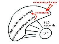Я связан со всеми остальными через 613 желаний. Если все эти желания я использую для самонаслаждения, то они называются злым началом. А если исправляю их на отдачу другим, то это - доброе начало. Таким образом, мы должны перейти от злого начала – к доброму. Это называется исправлением.